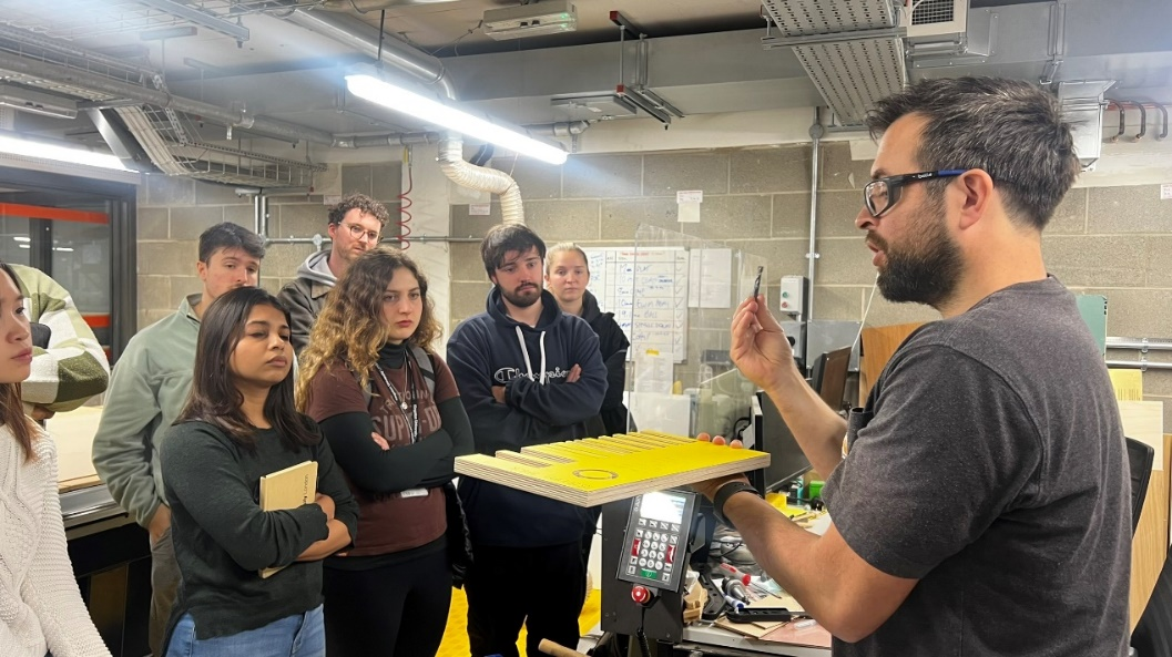 The symposium began with lectures and case studies of artists and architects such as Isamu Noguchi, Dani Karavan and Ricardo Bofill, contextualising relief-making within architectural history and sculpture. Students developed their own designs, received technical instruction on toolpaths, bit types, stepover strategies, and workflow planning, and visited Kingston’s CNC and plaster symposium series for live demonstrations. Participants learned to model with fabrication constraints in mind and adapted their designs based on machine capabilities. Casting techniques were introduced through hands-on sessions in the plaster and vacuum-forming studios, where students created and cast their own moulds.